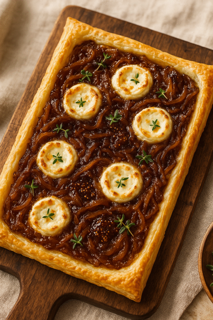 Savory, flaky, and creamy—this Caramelized Onion and Goat Cheese Tart with puff pastry is a foolproof brunch favorite (easy, elegant, utterly delicious)
